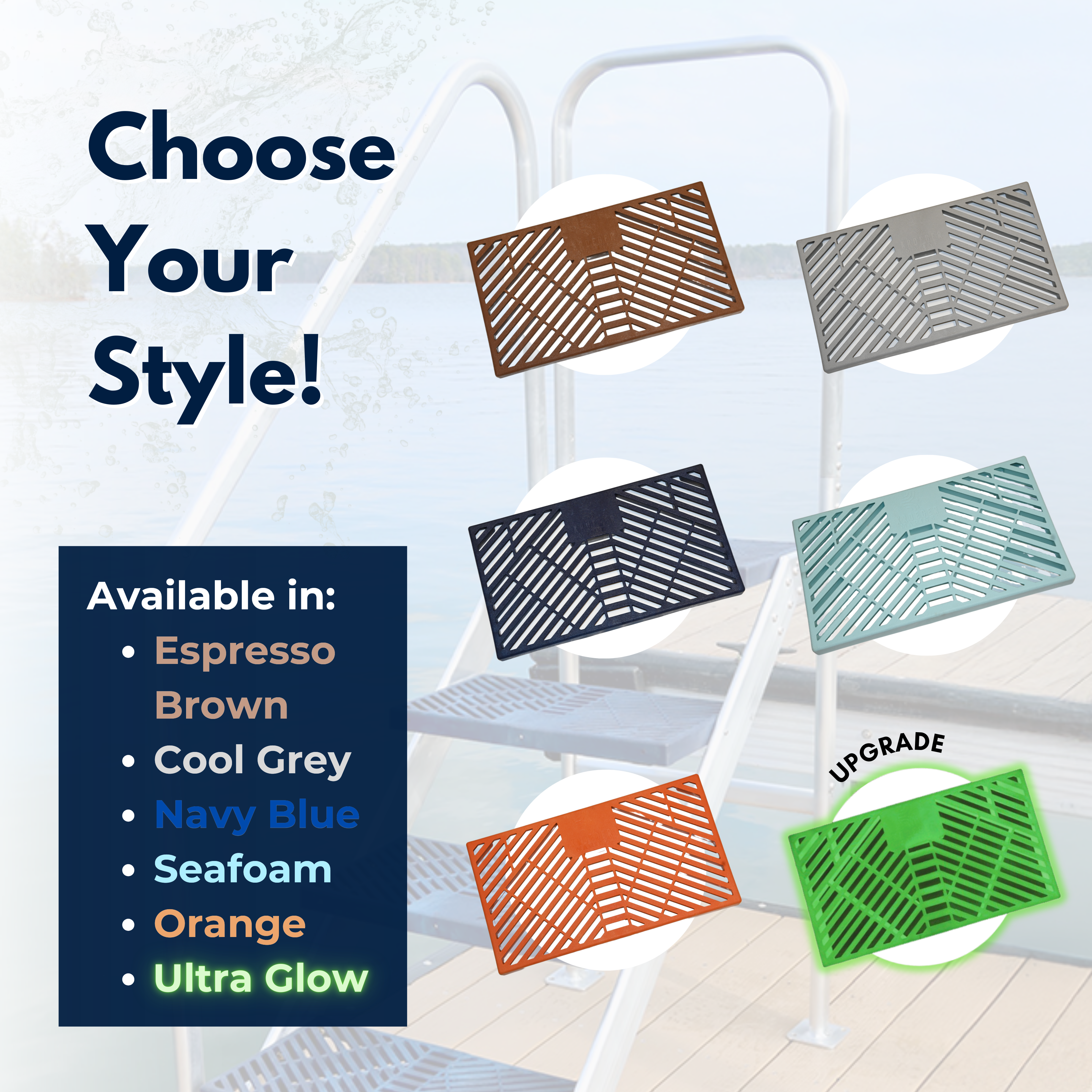 - Steps are made of high strength glass-filled nylon providing a slip-resistant, gentle surface for added safety and grip, available in a variety of UV-resistant colors