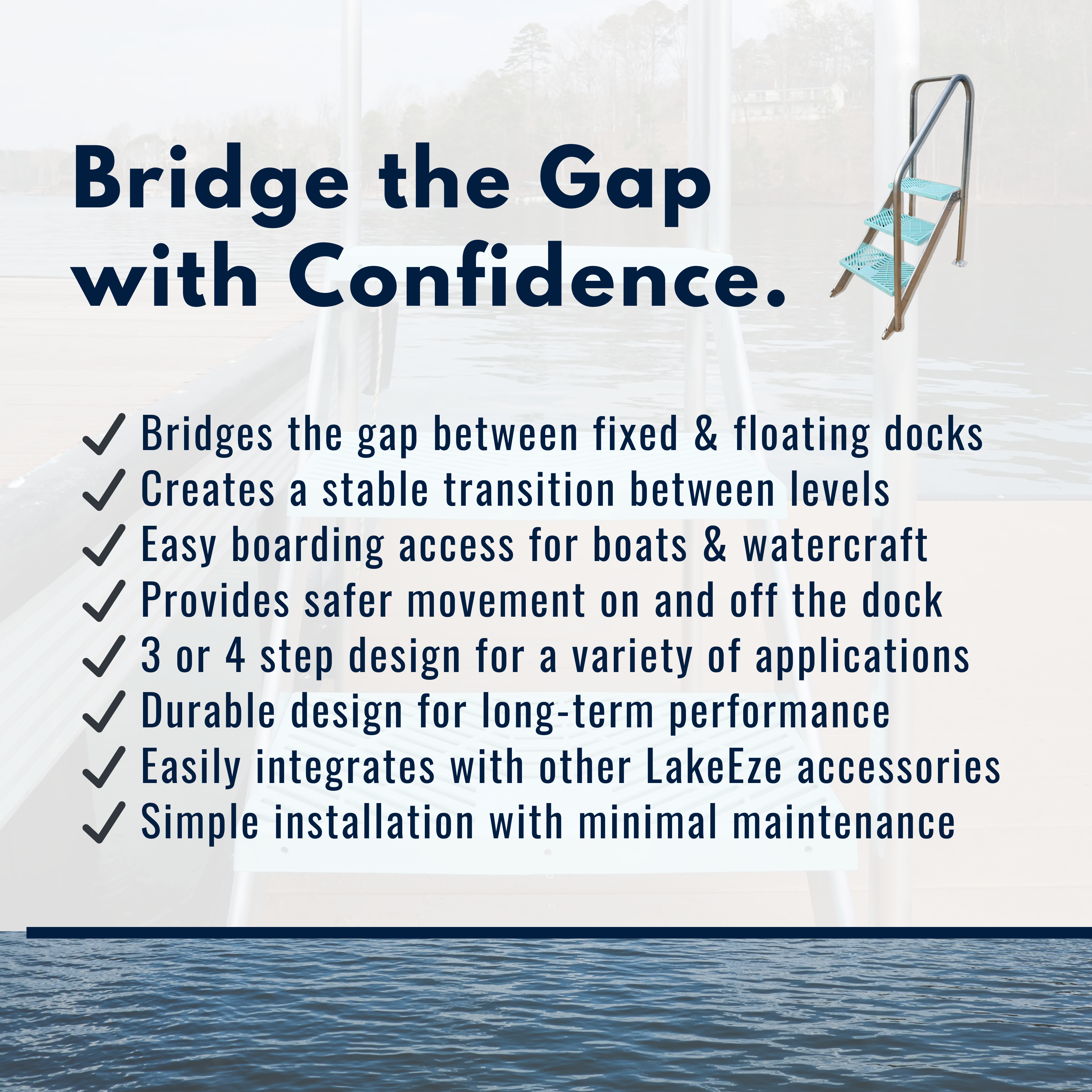 - Available in 3-step or 4-step models to accommodate different dock heights and setups